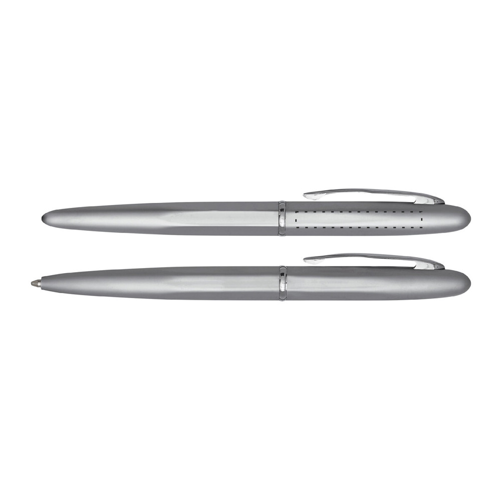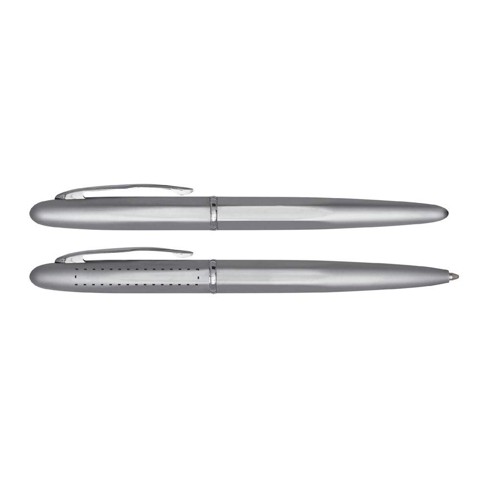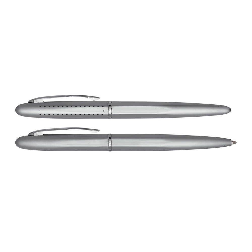 Schreibset COMTESSE: bestehend aus Metall-Tintenroller mit Verschlusskappe (schwarzschreibend) und Metall-Drehkugelschreiber (blauschreibend), mit hochglanz-verchromten Dekorelementen, Lieferung in Geschenkbox