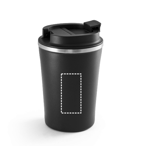 Reisebecher (470 mL) aus Edelstahl und PP, doppelwandig und vakuumisoliert. Mit matter beschichteter Oberfläche, die mehr Haltbarkeit und Resistenz bietet. Geliefert in einer Schachtel. ø90 x 150 mm